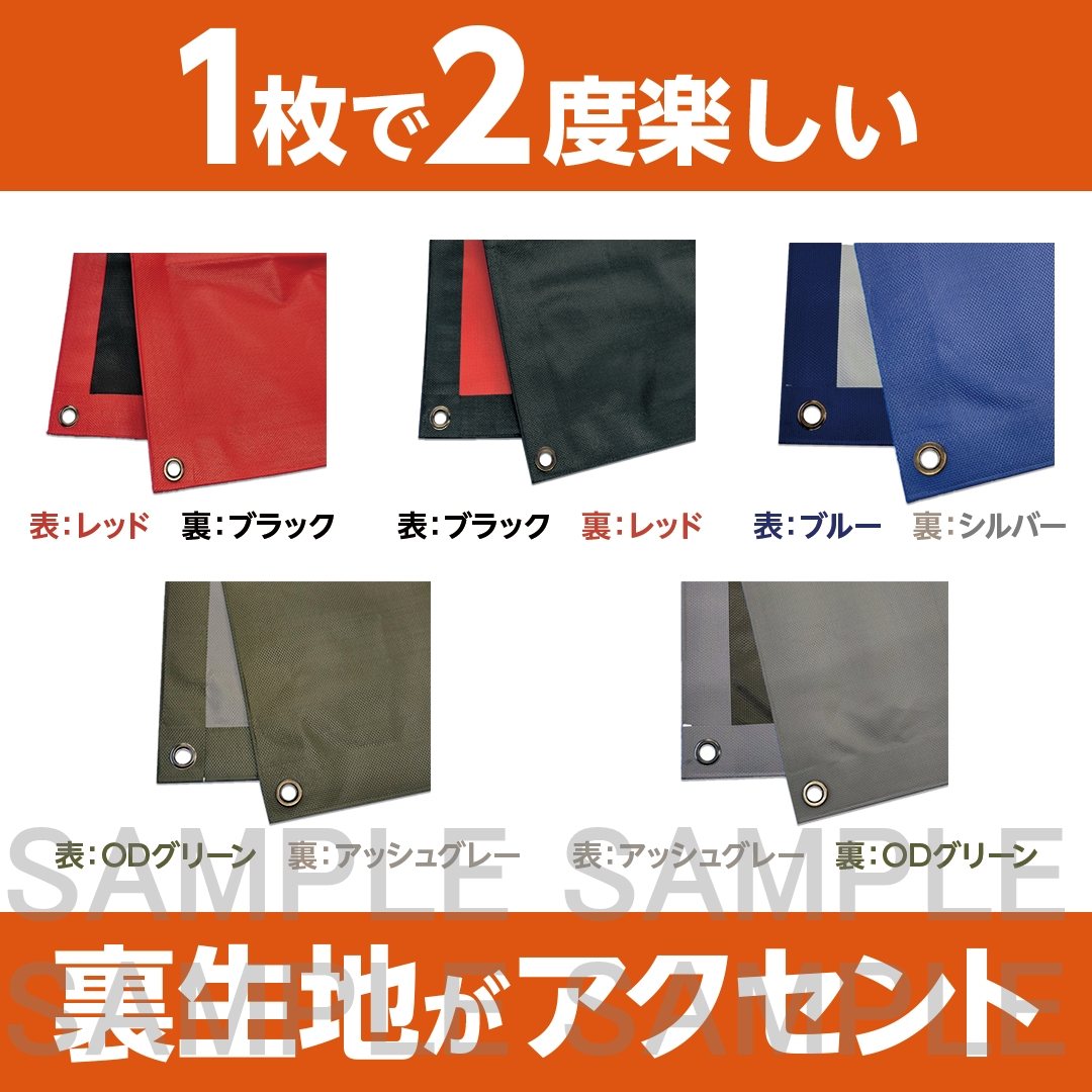 | 素材 | シート本体:ポリプロピレン、ハトメ:真鍮(黒ニッケル処理)、周囲ロープ:ポリプロピレン |