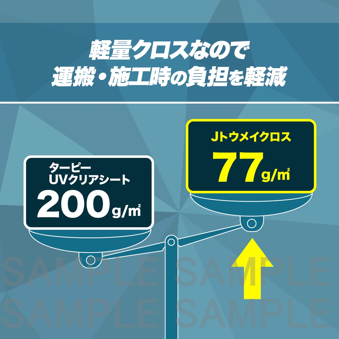 ポリフィルムよりも強度を有しているクロスシートタイプの軽量クリアクロスです。