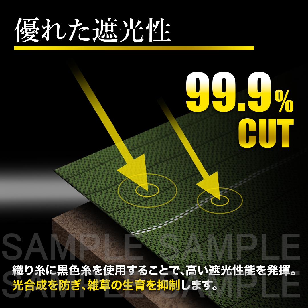 1透水性能:約5cm間隔に特殊繊維を使用して、水抜けを促進させています。 2雑草の抑制:遮光率を高くしている事で、雑草の生育を抑えます。
