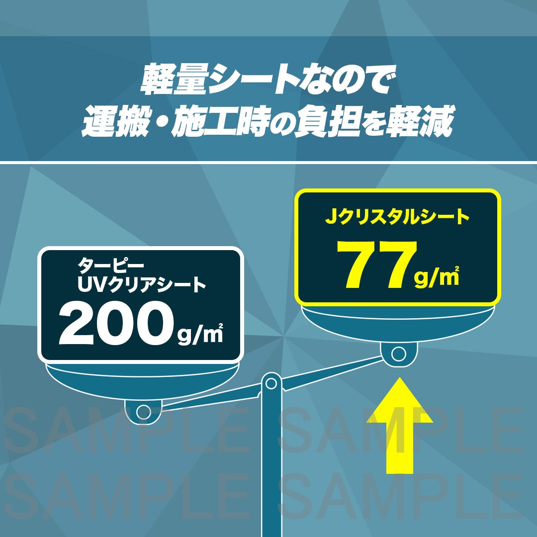 PEフィルムよりも強度を有しているクロスシートタイプの軽量クリアシートです。
