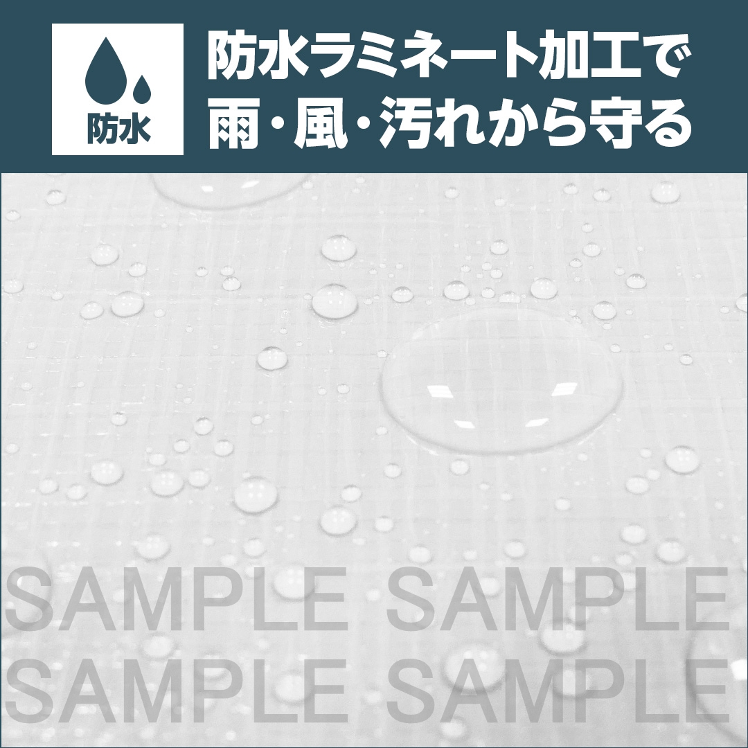 シート本体:ポリエチレン、ハトメ:アルミ又はプラスチック、周囲ロープ:ポリプロピレン