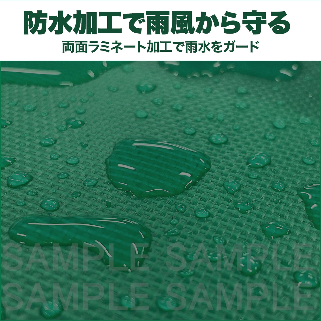 シート本体:ポリプロピレン ハトメ:アルミニウム(刻印有り) 周囲ロープ:ポリプロピレン