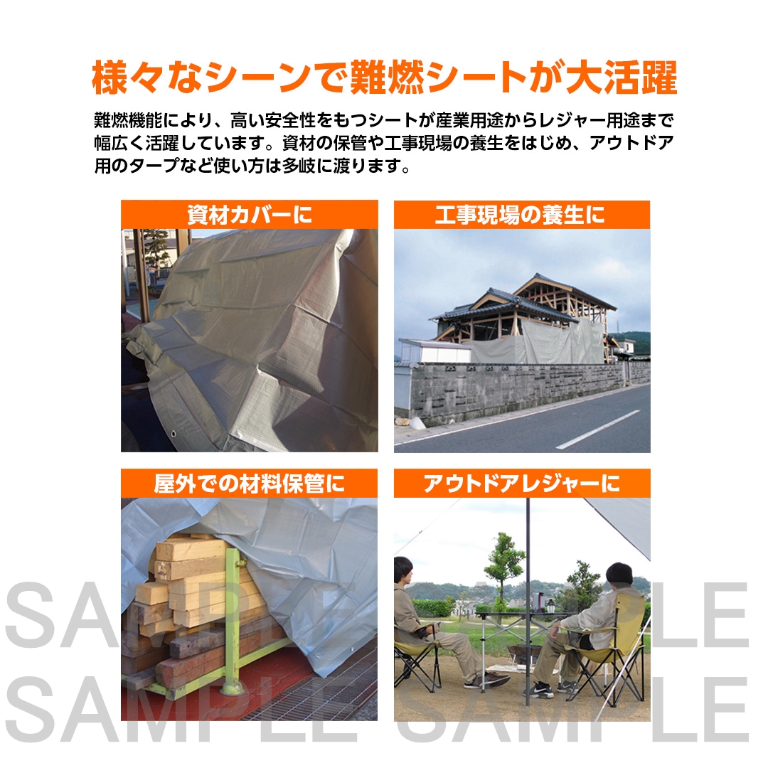 ブルーシートの進化系、自己消火性機能を有したシート