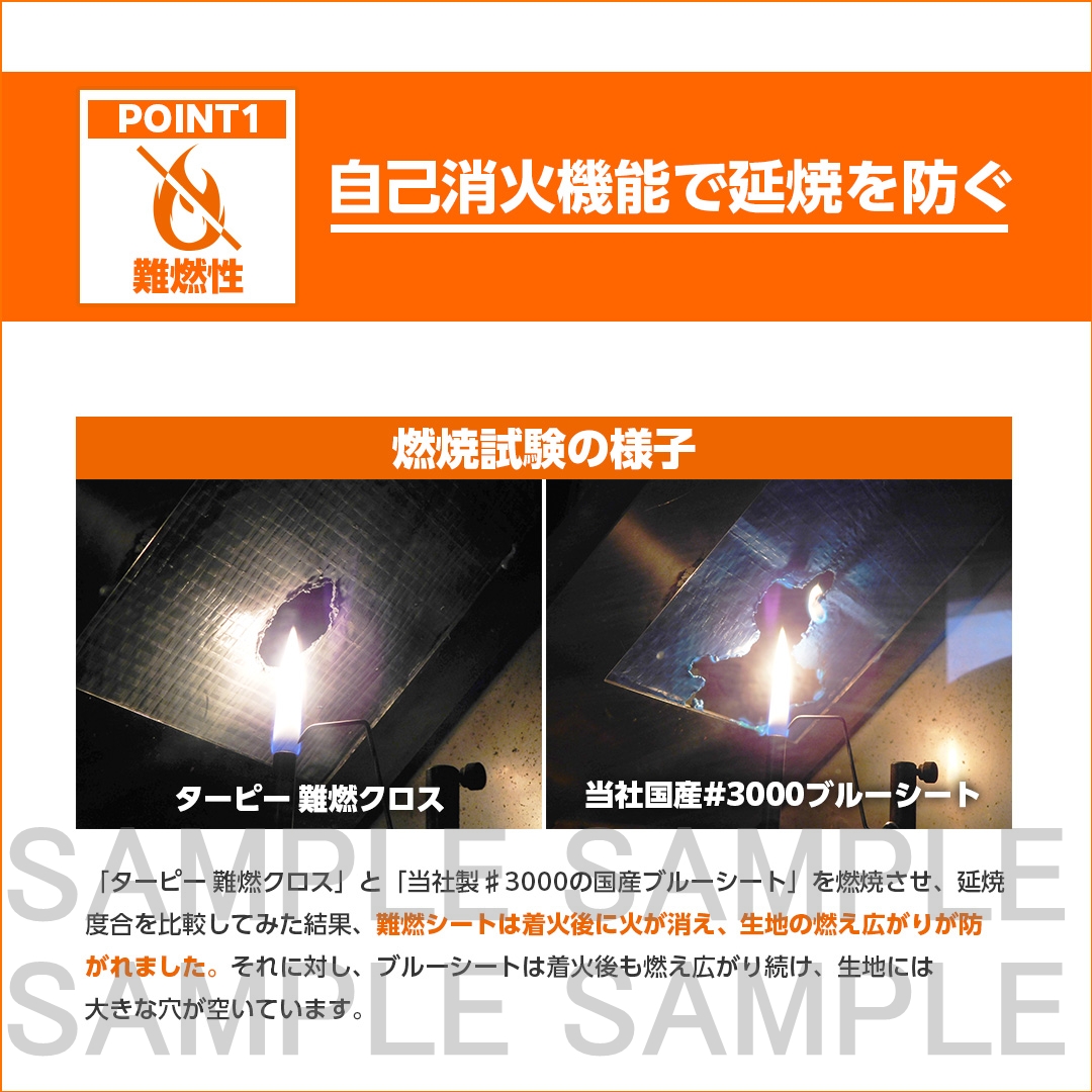 ブルーシートの進化形、自己消火性機能を有した難燃クロス