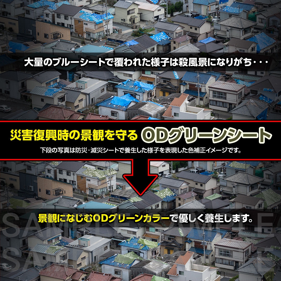 【環境配慮】と【作業性の高さ】を両立。防災・減災に特化したブルーシートです。