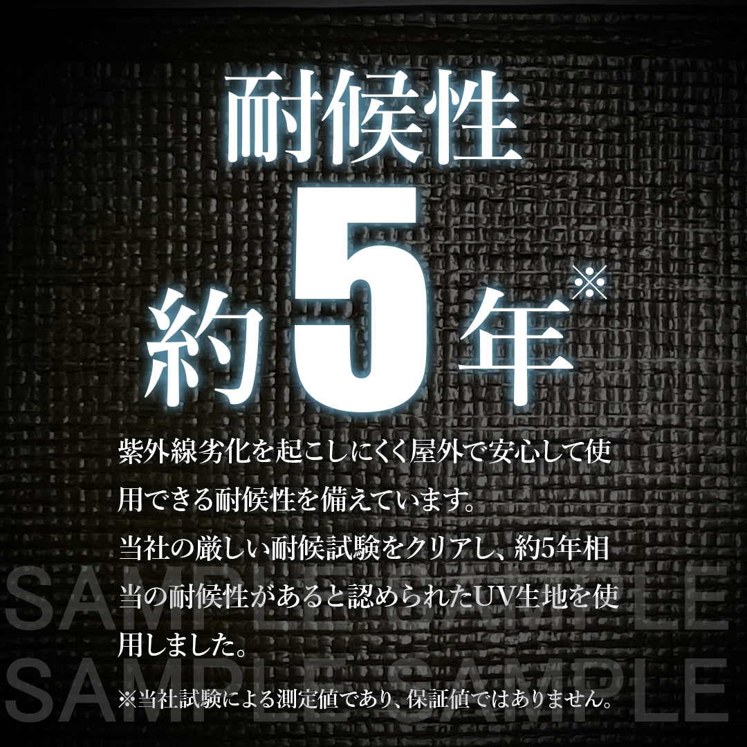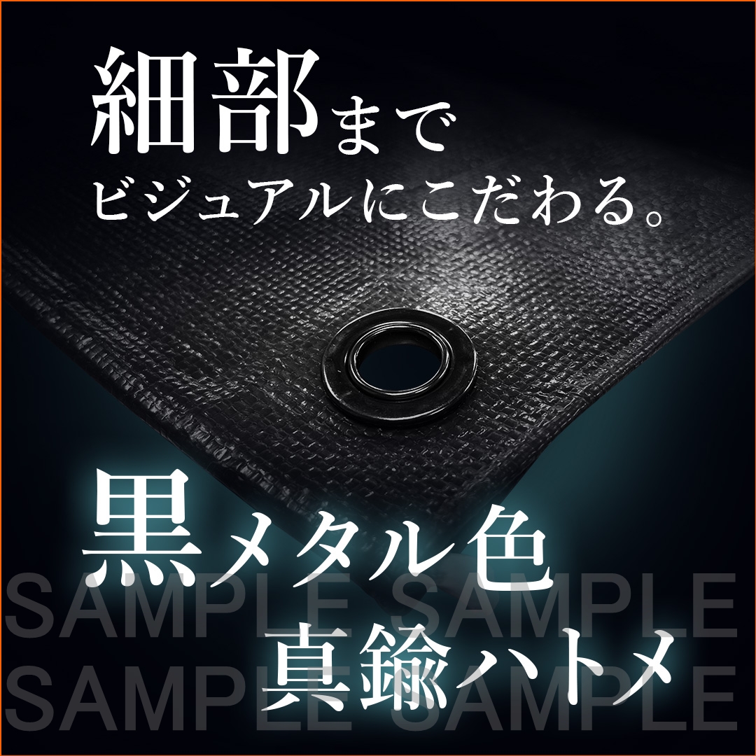 シート本体:ポリエチレン、ハトメ:真鍮(黒ニッケルメッキ)、周囲ロープ:ポリプロピレン